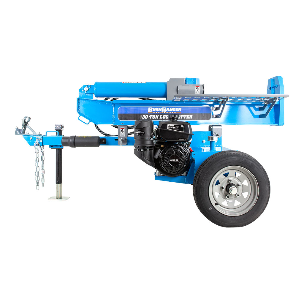 he BUSHRANGER 30-Ton log splitter provides quality and power at an affordable price. Fitted with a KOHLER Command PRO CH395 engine, a manually activated auto return valve with a 12.9 second cycle time and quality features throughout this log splitter will provide many years of reliable service.